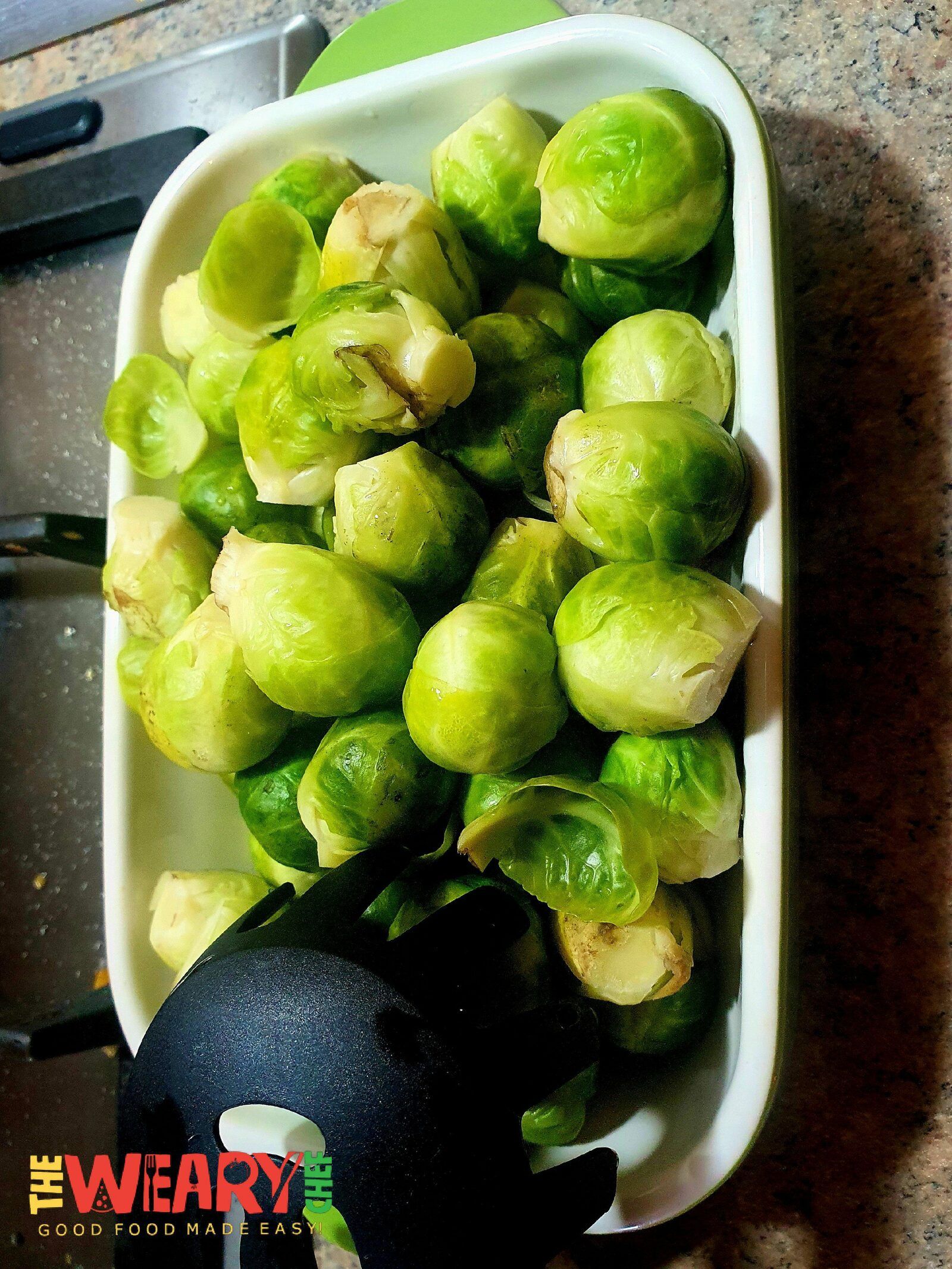 First of all, prepare the brussel sprouts for cooking. Wash it, trim the edges, and get rid of the yellow leaves.