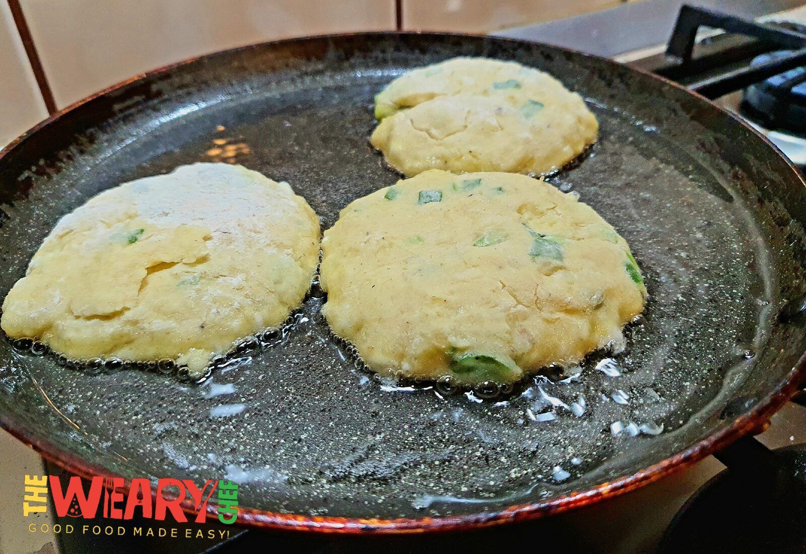 Just fry the pancakes, in batches, until they’re golden brown and crispy on both sides (for 3 to 4 minutes). Add more oil to the pan as needed between batches, do not overcrowd the pan, and do not flip the pancakes too soon if you want them to develop a crisp crust.